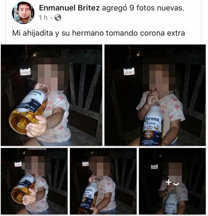 Las imágenes se viralizaron el viernes, en ellas se observa a un adulto dando de beber bebidas alcohólicas a dos niños.