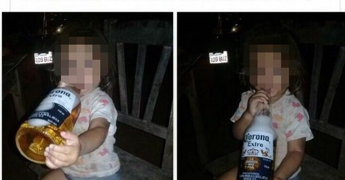 Las imágenes se viralizaron el viernes, en ellas se observa a un adulto dando de beber bebidas alcohólicas a dos niños.