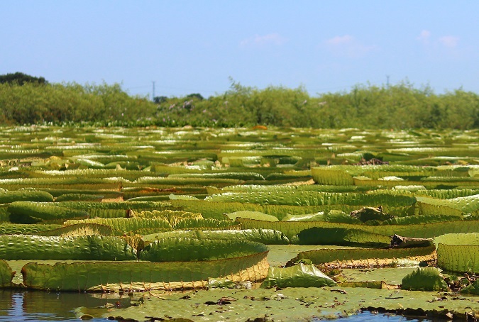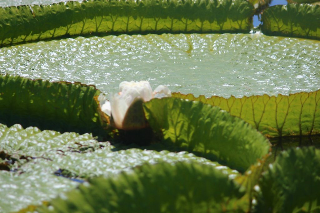 La planta flotante presenta un gran diámetro y su flor se abre por la noche, muchas de ellas ya no se ven, ya que personas inescrupulosas las llevaron.