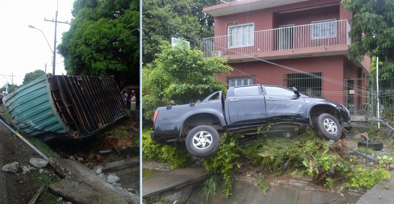 Un camión semirremolque fue el causante de un triple choque, el mismo embistió contra dos automóviles y posteriormente derribo el muro de una vivienda.