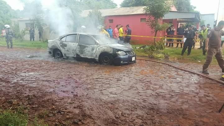 Cuando los hombres se dieron cuenta de la presencia policial atropellaron el vehículo de los agentes, y posiblemente por dicha razón habría comenzado a incendiarse el rodado de los sospechosos por lo que debieron abandonar el vehículo.