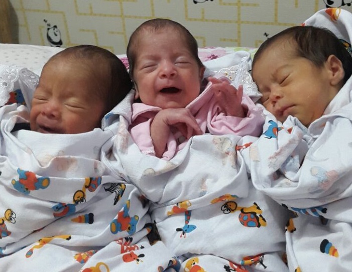 Los tres nacieron prematuros, con 32 semanas pesando 1.500 gramos las niñas y el niño 1.700 gramos.