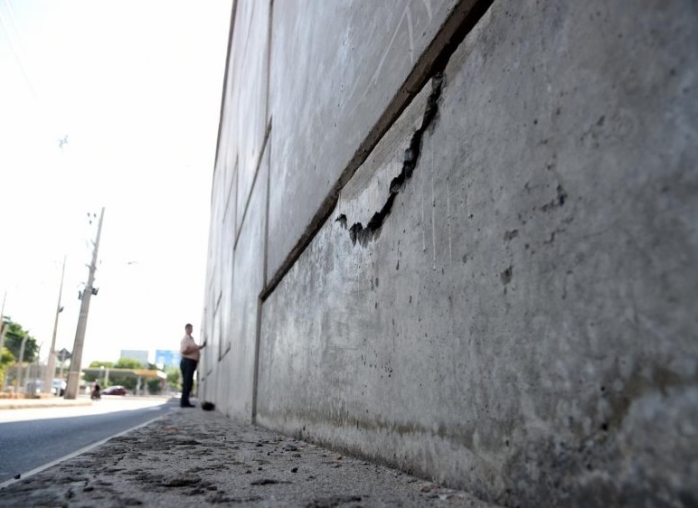 Los muros presentan alarmantes señales de deterioro a poco tiempo de haberse inaugurado.