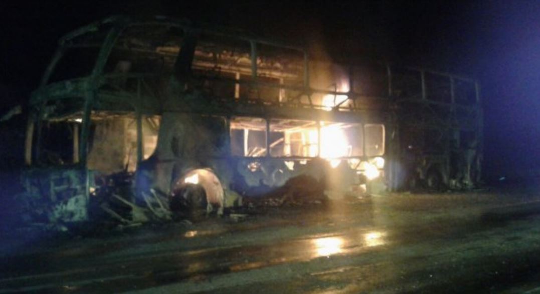 Así mismo los policías informaron que el ómnibus, marca Marcopolo, al servicio de la empresa de turismo Caravana, se incendió y fue consumido por las llamas.