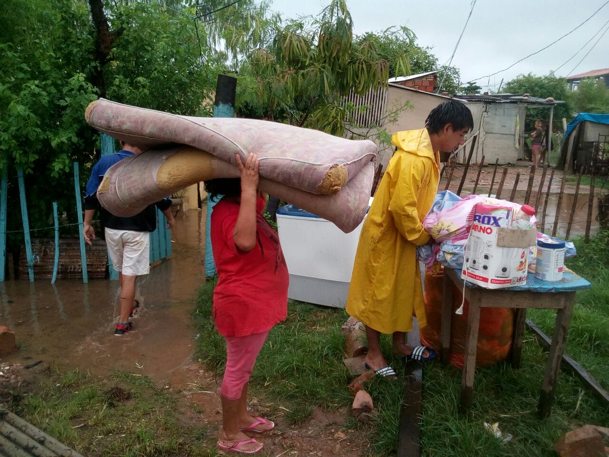 Estamos coordinando esfuerzos con @senparaguay y otras instituciones para continuar la asistencia a los afectados por la crecida del río Paraguay. Las lluvias complican la situación, pero nuestros funcionarios no retroceden. @AsuncionMuni pic.twitter.com/7xGFJ99Xp5