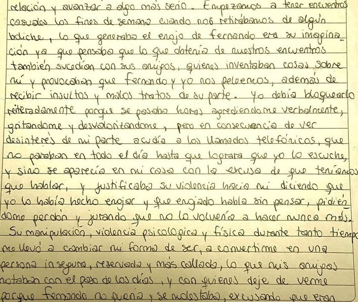 En otro apartado menciono: «Una vez que satisfacía su sentimiento de posesión hacia mí, recién se tranquilizaba porque me trataba igualmente que a un objeto».