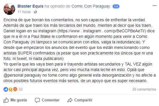 PLEASE WARN THE PEOPLE! Few weeks ago I post the announcement of my participation in the Comic Con Paraguay….