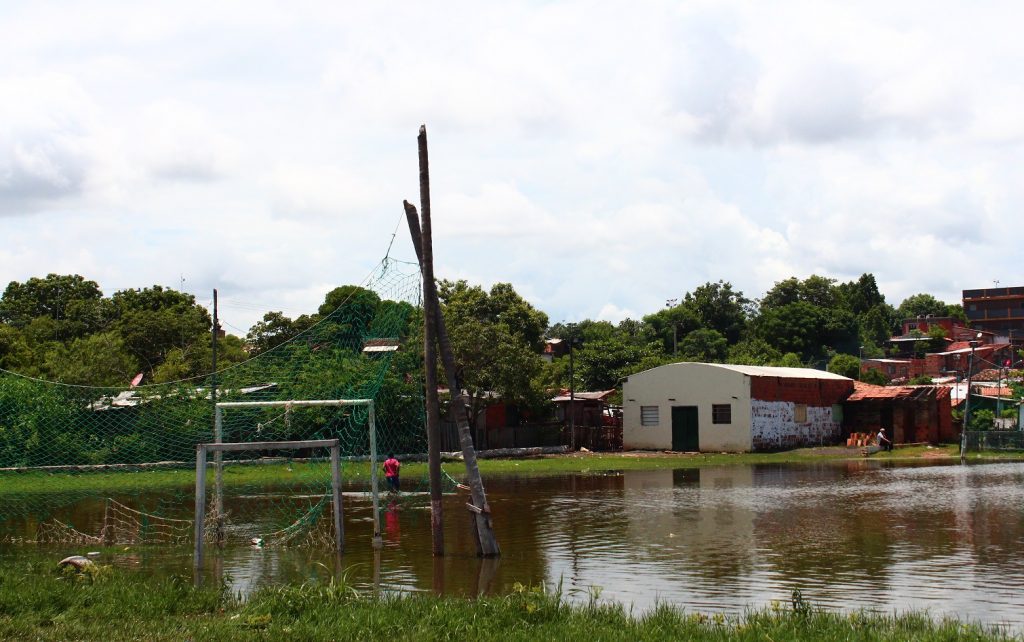 La canchita que se encuentra al costado del comedor amaneció inundada, y falta poco para que las aguas alcancen el predio del comedor.