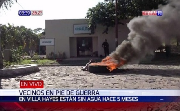 En la mañana de este lunes pobladores de algunos barrios de Villa Hayes se manifestaron frente a la sede de la ESSAP, y reclamaron el mal servicio de la entidad.
