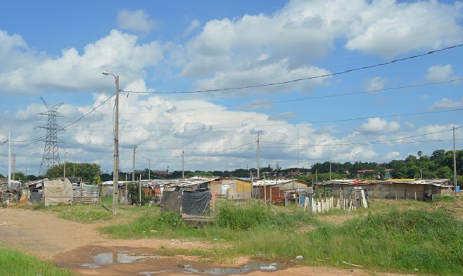 Casas precarias del refugio en la Costanera. Foto: Mercedes Toñánez. RDN.