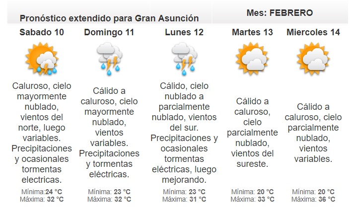 La dirección de meteorología anuncia para este viernes, un clima caluroso, con el cielo nublado a nublado y vientos del norte.