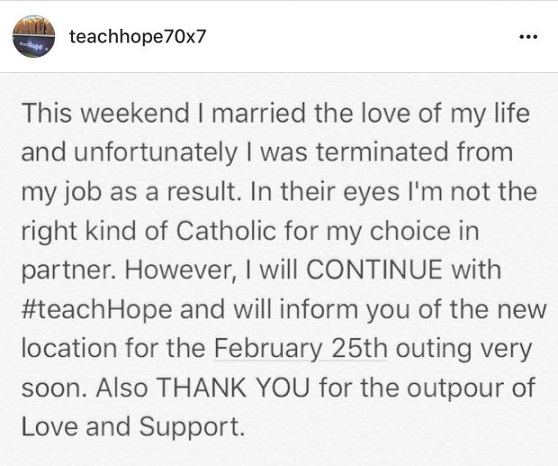 “En su opinión, no soy el tipo correcto de católico por mi elección de pareja”, denunció Morffi en las redes sociales. El centro decidió enviar una circular a los padres de los alumnos explicando su versión.