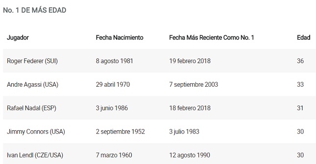 Este lunes 19, Federer sucederá a Rafael Nadal en el primer puesto y romperá varios récords: el periodo más largo entre etapas en el número 1, se convertirá en el jugador de más edad en lograr la primera plaza de la clasificación y el periodo más largo entre el primer y el último día en la conquista del número 1.