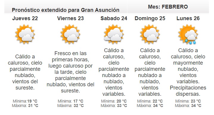 La dirección de meteorología anunció que este miércoles se presentará de cálido a caluroso, con vientos del sur.