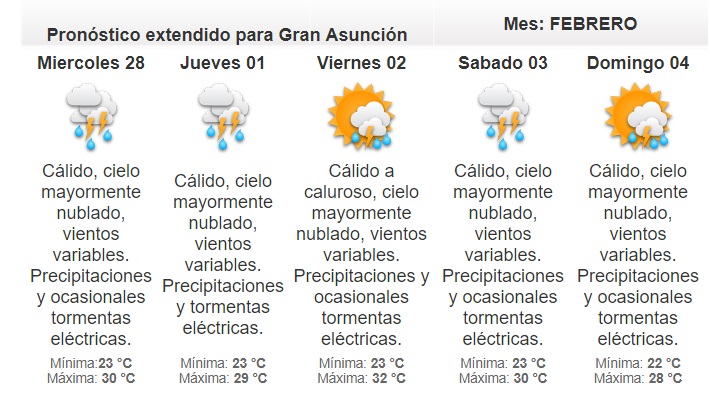 La dirección de meteorología anuncia una jornada cálida a calurosa. No se descartan chaparrones.