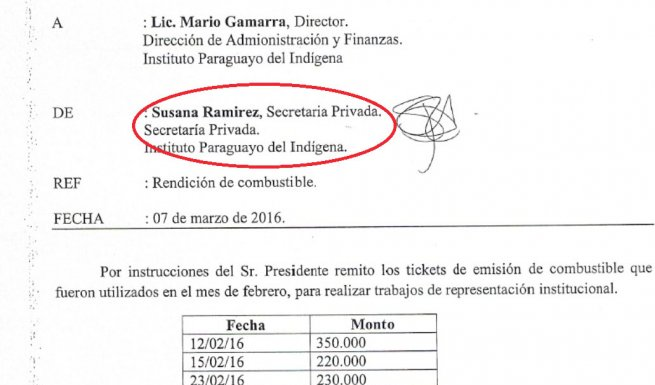 Según lo reportó Última Hora, el presidente del Indi, confirmó al diario que su novia marca asistencia en la institución y aseguró que la misma cumple la función de ser su secretaria privada.