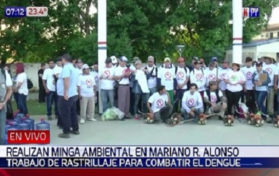 Alrededor de 300 personas se movilizaron en la mañana de este martes para realizar la minga ambiental en Mariano Roque Alonso, que es la ciudad que más casos reporta de dengue en el departamento Central.