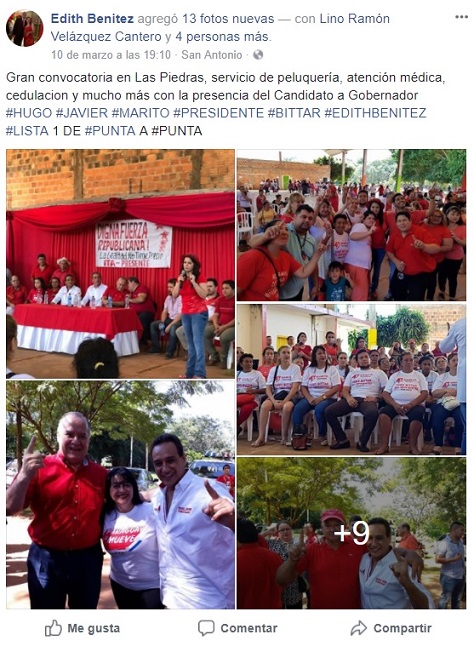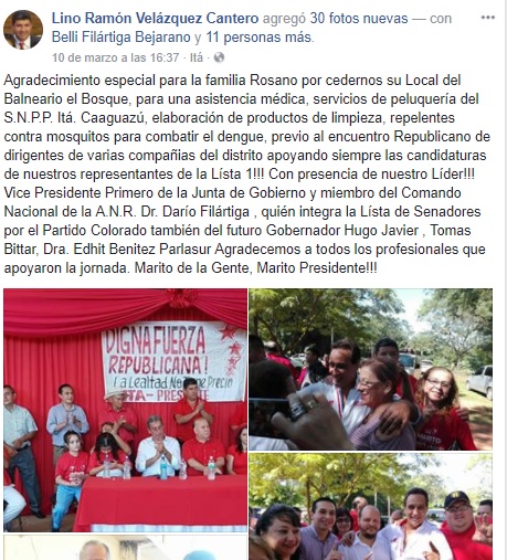 Filártiga, en las publicaciones en redes sociales, es nombrado como líder y forma parte del Comando Nacional de Campaña de la Asociación Nacional Republicana (ANR).