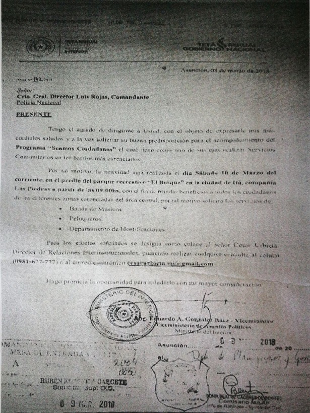 Señaló que la presencia del Departamento de Identificaciones fue solicitada vía nota, a través del Comandante de la Policía Nacional, por la organización “Seamos ciudadanos”, así como lo realizan a diario distintas organizaciones civiles.