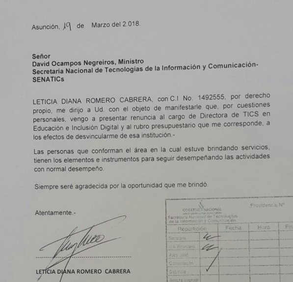 El hecho se descubrió mediante una denuncia anónima a la Secretaría Nacional Anticorrupción (SNA) que informaba que Leticia Romero había culminado apenas la secundaria.