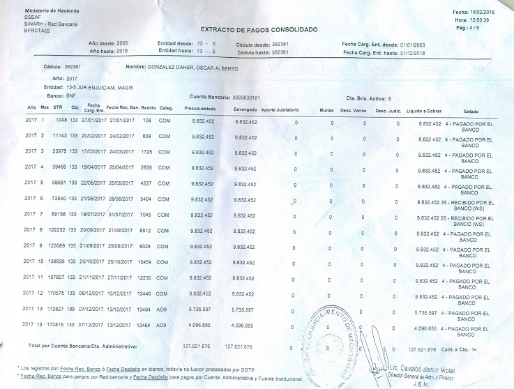 Los mismos fueron remitidos por el actual presidente del JEM, Daniel Kriskovich, después de un pedido de informe de la Contraloría General de la República.