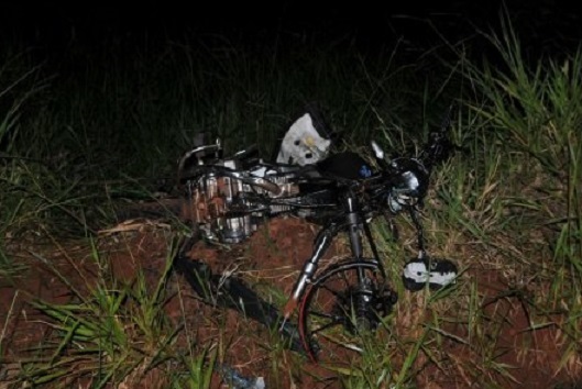 Los dos ocupantes del biciclo cayeron al asfalto, uno de ellos falleció a causa del impactó y otro resultó herido.
