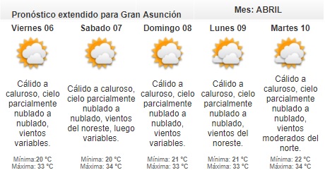 De acuerdo a lo informado por la Dirección de Meteorología, para este jueves se espera una temperatura máxima de 32 grados.