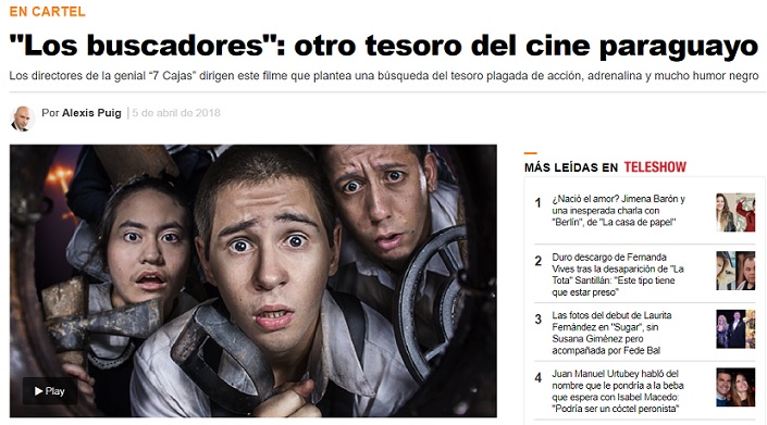 Los Buscadores llegan a los cines de Argentina desde este jueves, medios como Clarín, La Nación e Infobae le dieron amplio destaque a la cinta paraguaya que cuenta la aventura de Manu, un joven que desea salir de la pobreza buscando un tesoro.