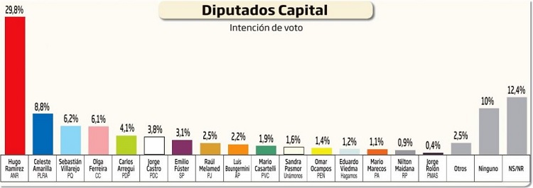 Para la Cámara de diputados por capital, la lista de colorados tienen una amplia ventaja sobre la nómina encabezada por el PLRA y los demás partidos de la oposición.