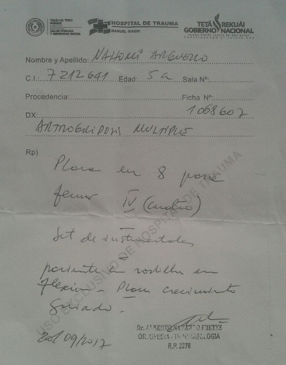 Manifestó que será su quinta intervención y la más costosa, ya que la placa que precisa la pequeña para sus piernas tiene un costo de G. 30 millones.