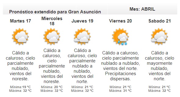 Para este lunes se espera una jornada cálida a calurosa, de acuerdo a lo reportado por la Dirección de Meteorología. No se anuncian precipitaciones.