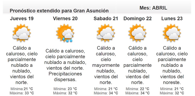 Afirman que se prevén también chaparrones con tormentas eléctricas aisladas para los departamentos del norte y este de la región Oriental y el centro y norte del Chaco.