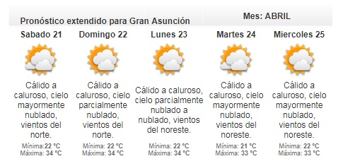 El clima se presentará cálido con vientos del norte y alta probabilidad de chaparrones.