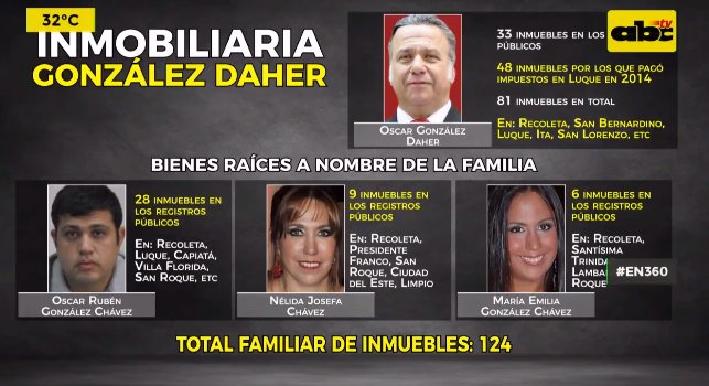 En el caso de su esposa, Nélida Josefina Chávez, tiene a su nombre nueve propiedades, mientras que el hijo de la pareja, Oscar Rubén González Chávez, posee 28 inmuebles.