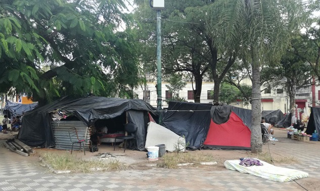Actualmente en el lugar también se encuentran acampando, familias que habían invadido el Cuartel de la Victoria, en San Lorenzo. En la imagen se puede observar cómo se encuentra el sitio.