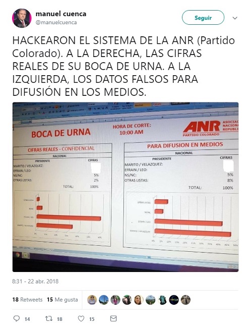 Manuel Cuenca publicó en su cuenta de Twitter los supuestos resultados.