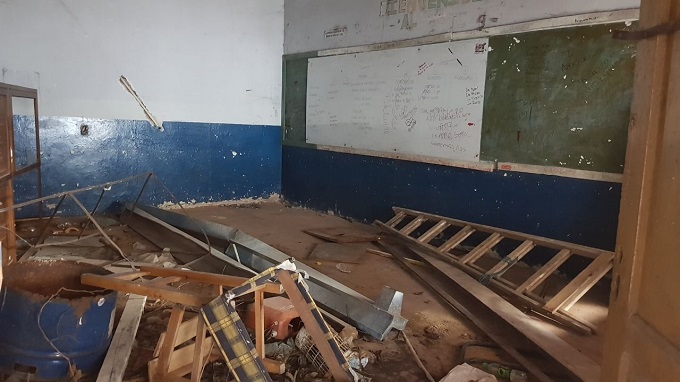 La institución presenta varias falencias, desde la falta de techos, aulas abandonadas, y un intenso mal olor que inunda el lugar.