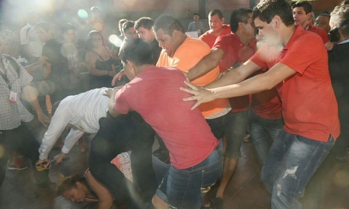 Turba que acompañó al candidato agredió a periodistas. Mientras, un grupo de adherentes vitoreaba al político luqueño.https://t.co/NVxcG7t2Li