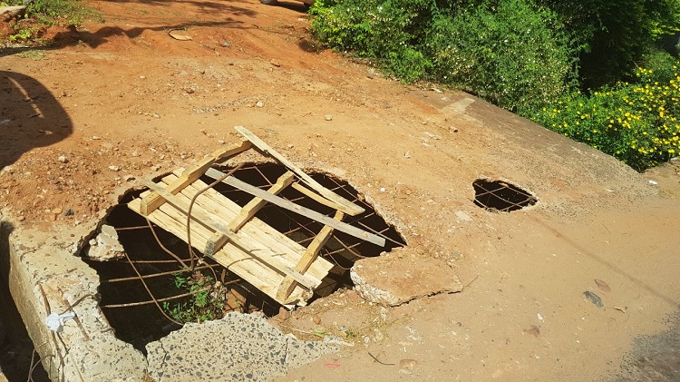 Es importante señalar que el puente presenta numerosos pozos, algunos de ellos cerrados con madera.