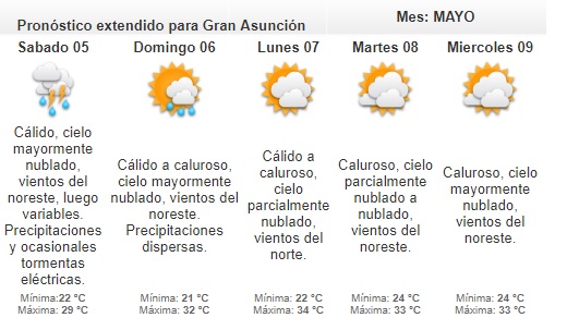 Desde la Dirección de Meteorología pronostican una jornada cálida a calurosa, con algunas precipitaciones.
