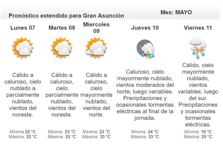 Según informó Meteorología, las probabilidades de lluvias dispersas se acentúan este domingo, sin embargo, el lunes no se esperan lluvias y el ambiente cálido y caluroso predominará durante los próximos días.