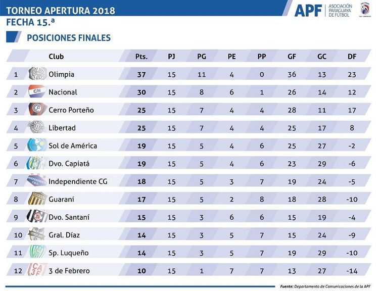 Este martes arranca la fecha 16 del Torneo Apertura. En Para Uno, Olimpia recibirá a Santaní desde las 19:45. El Decano se encuentra en la punta con 7 puntos de diferencia sobre Nacional.
