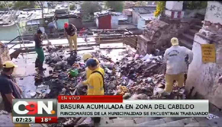 Según reportó C9N, en la zona del Cabildo  y la Catedral Metropolitana está inundada de basura, de todo tipo. Los funcionarios de Aseo Urbano de la Comuna Capitalina se encuentran arduamente trabajando para dejar el lugar limpio para las festividades de la Independencia Nacional.
