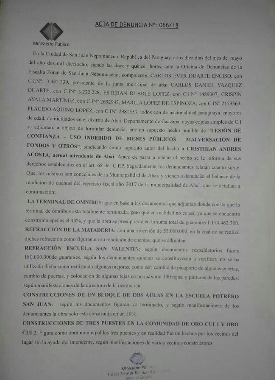 Denuncia ante la Fiscalía Foto: Gentileza.