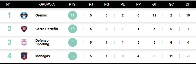 Los clasificados hasta la fecha son; Gremio, Cerro Porteño, Libertad, River Plate, Racing, Santos y Palmeiras, según Abc Deportes.