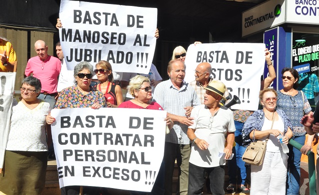 En varias oportunidades, jubilados y sus familiares realizaron manifestaciones en contra de las actuales autoridades, que se encuentran imputadas y que podrían ser llevadas a juicio oral por lesión de confianza.