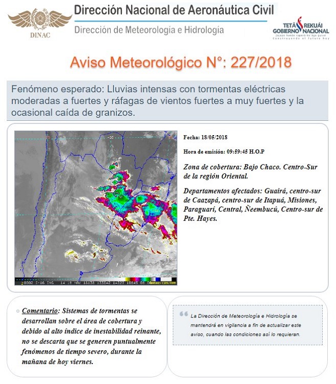 Los departamentos afectados son Guairá, centro-sur de Caazapá, centro-sur de Itapúa, Misiones, Paraguarí, Central, Ñeembucú y Presidente Hayes.