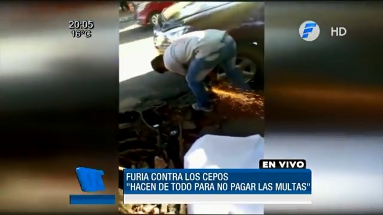 Según informó Telefuturo, existen varios videos donde se ven como los ciudadanos con sierra eléctrica o martillo intentan sacar los cepos de sus vehículos.