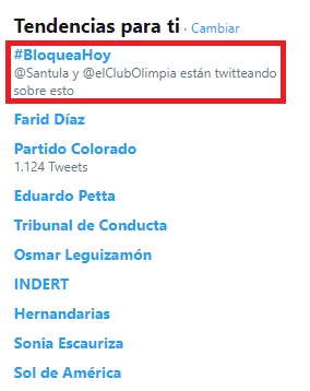 Horas después, el propio Club Olimpia inició una campaña para bloquear al medio bajo el hashtag #BloqueaHoy. En poco minutos se volvió tendencia, por la popularidad de la reprobación de la publicación del medio que pertenece al Grupo Cartes.
