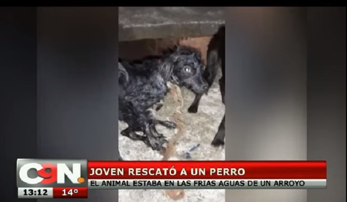Según informó C9N, un joven identificado como Adrián Ibarra, vio que un perrito estaba atado a una piedra y su cuerpo estaba dentro de un arroyo y se tiró al cauce para salvar al animal.
